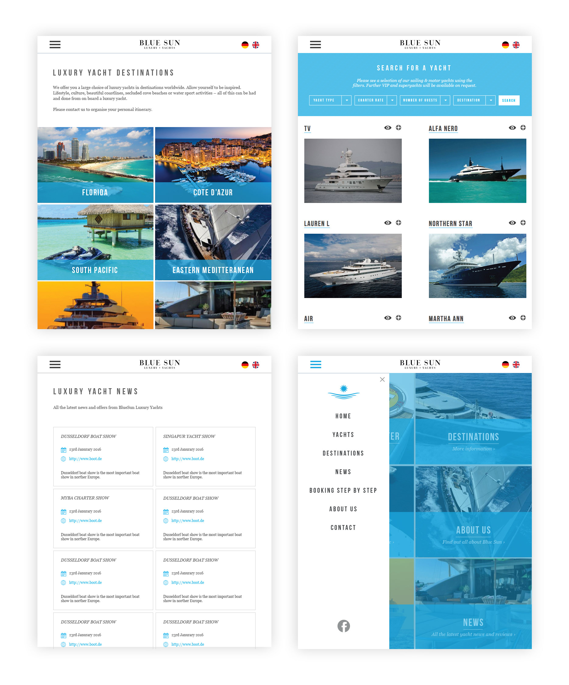 Design of a responsive website for Blue Sun Luxury Yachts.