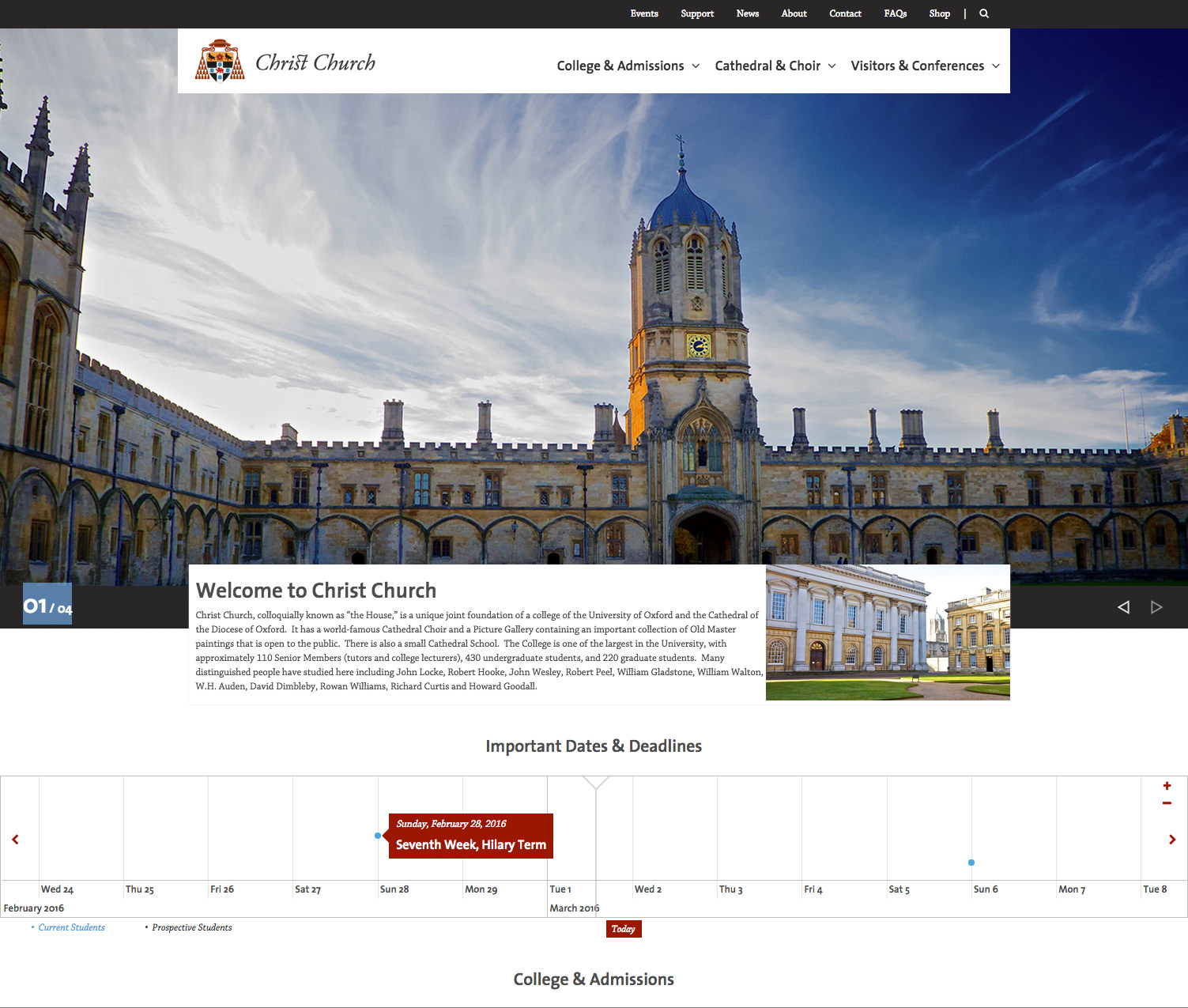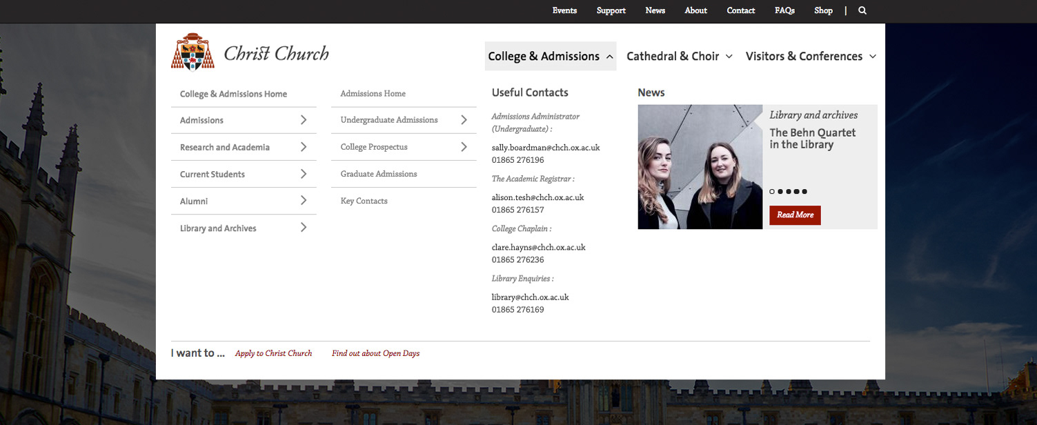 Re-design of the Christ Church College Oxford website