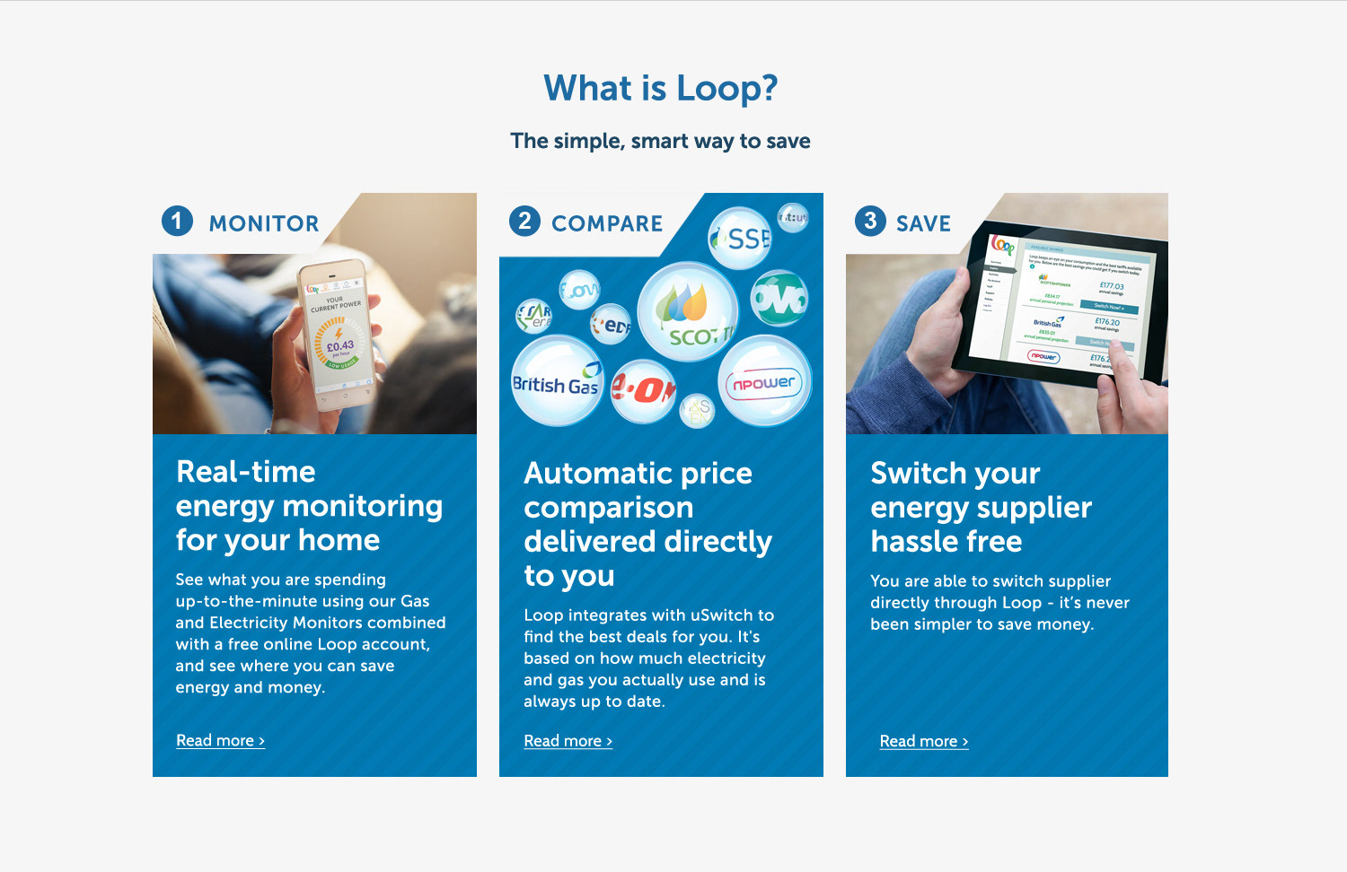 Design and implementation of marketing assets including packaging design, and a responsive website for Loop Energy Saver.
