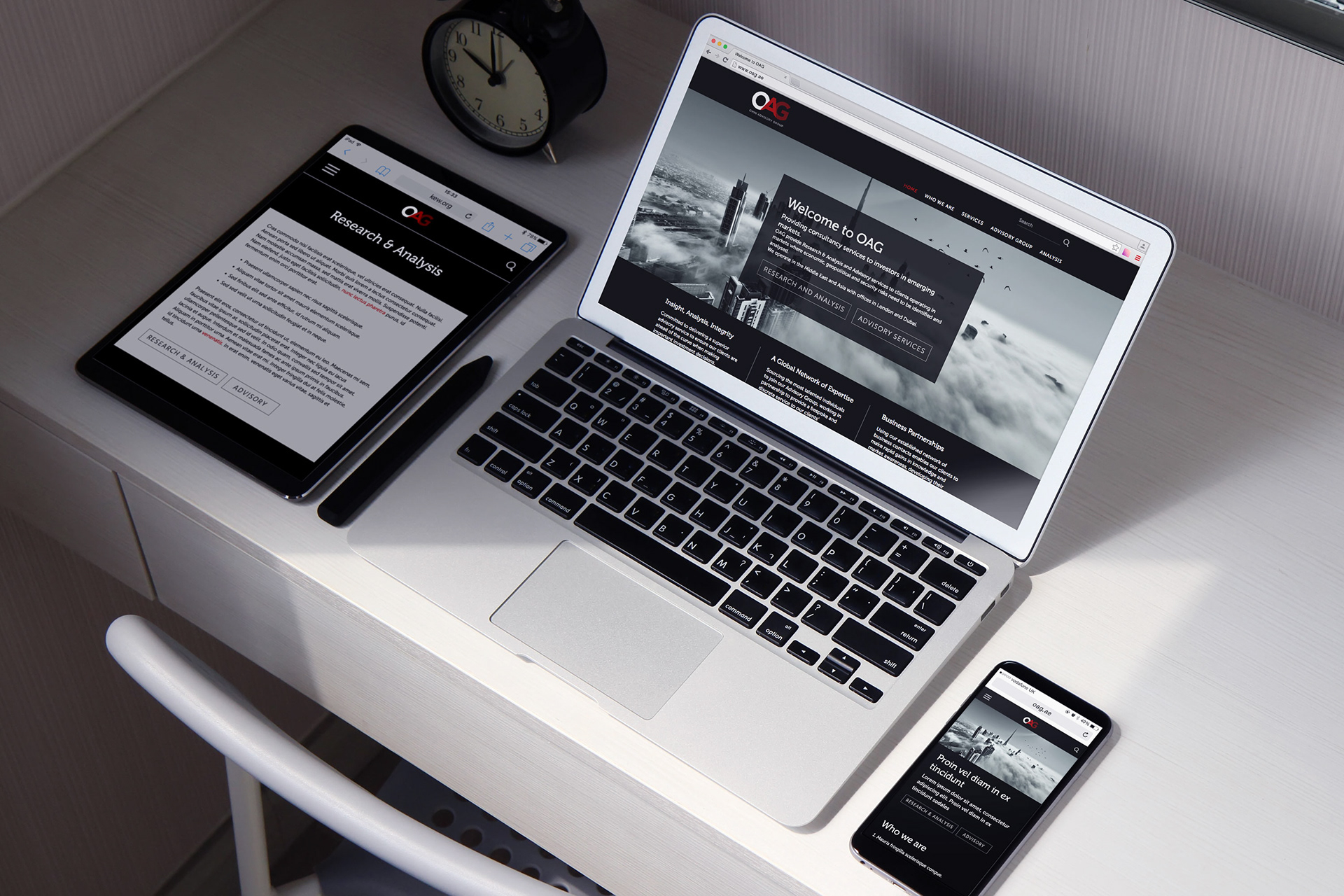 This was a small project that required a refresh of the brand, and a new responsive website design for the international advisory group OAG.